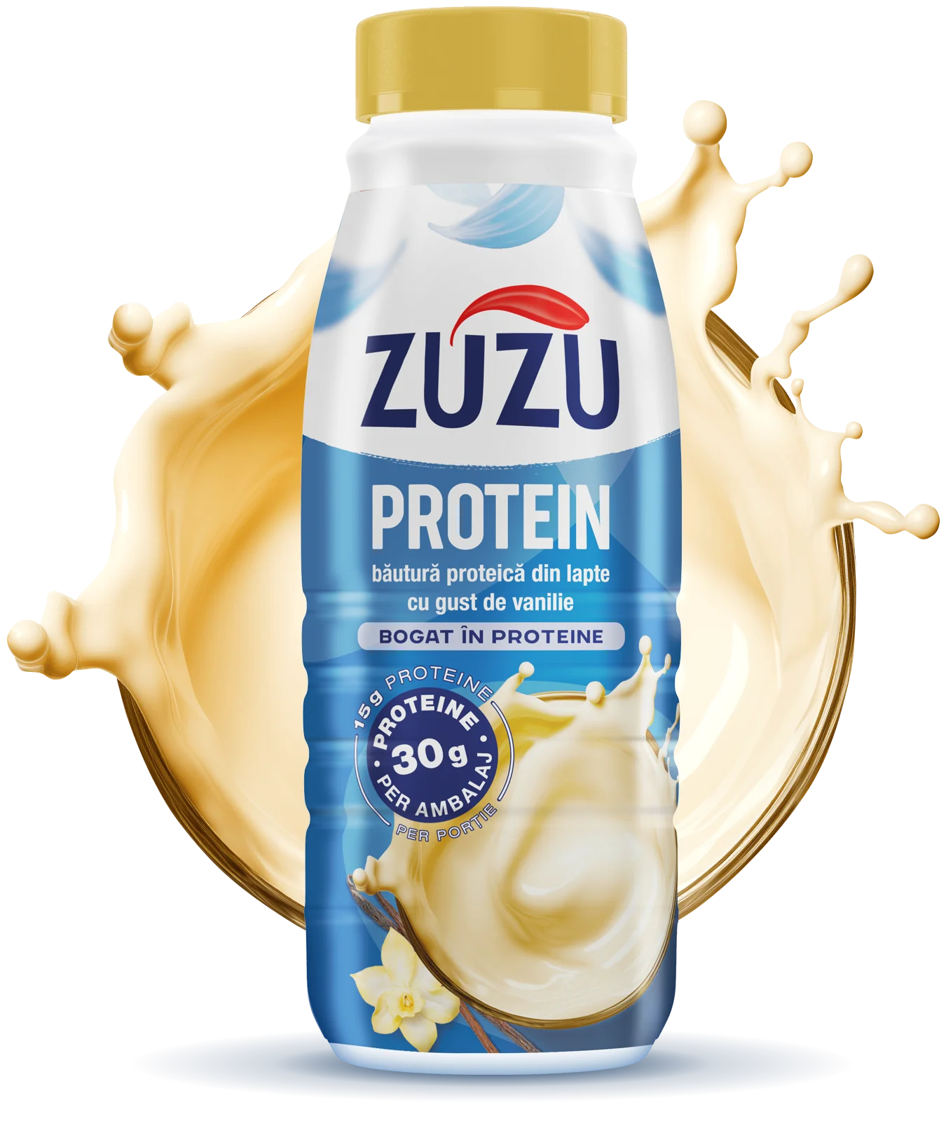 Zuzu Protein este o băutură delicioasă, cu gust de vanilie, bogată în proteine și cu conținut redus de grăsime și zahăr. Atunci când conștientizezi importanța alimentației și a recuperării într-o viață activă, Zuzu Protein devine partenerul tău de refacere oferindu-ți soluția ideală pentru a trece la nivelul următor.